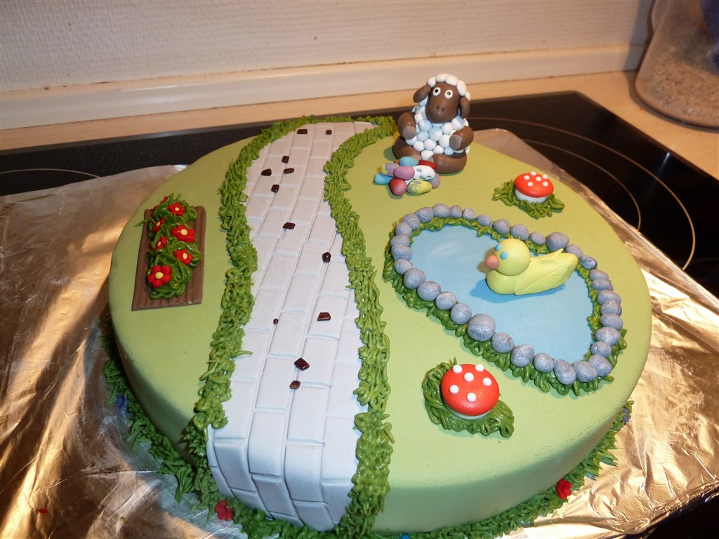 Græsset har du bare lavet med grøn fondant igennem en hvidløgspresser`?