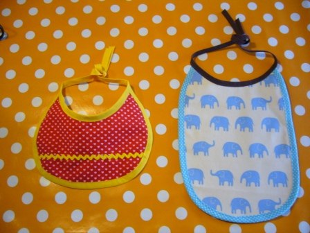 Endnu en hagesmæk i drengt farver - syet med gummi/froté lagen bagpå, så bliver junior ikke våde direkte ind på kroppen.