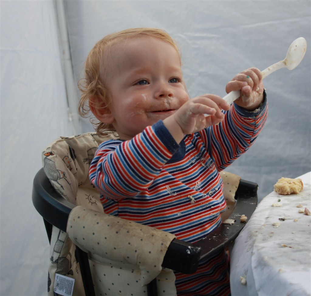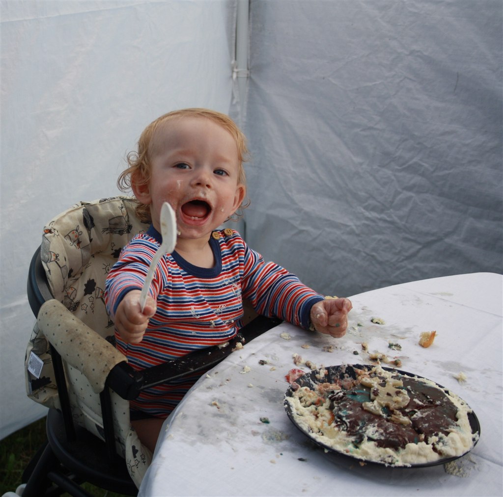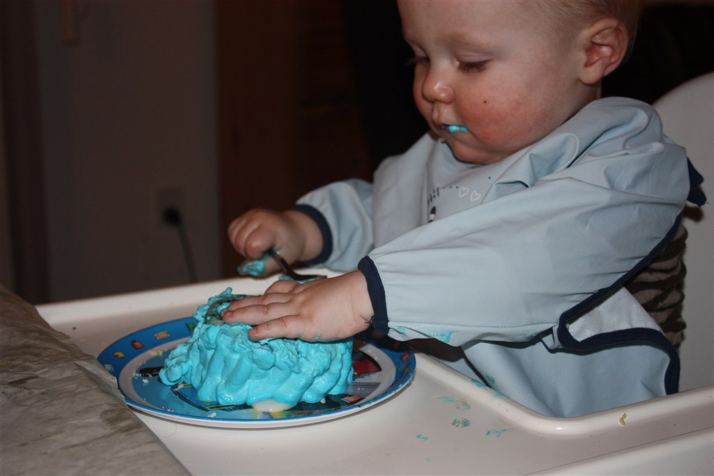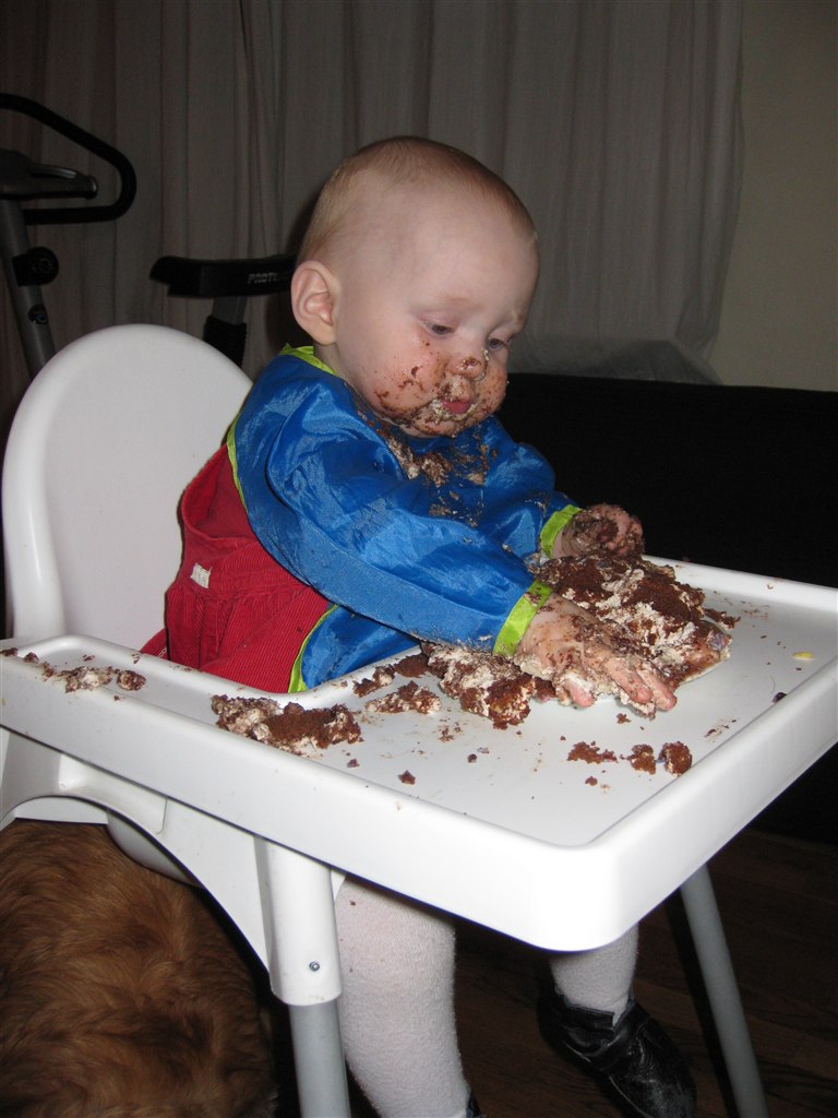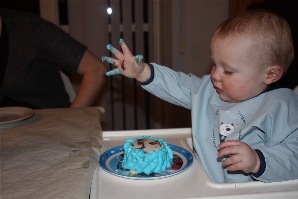 Det er altså noget helt specielt det med at de fylder 1 år. Her i huset får de deres egen lagkage som de må sidde og smovse i.