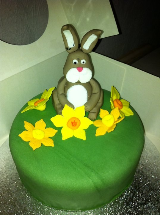 Idag har jeg været på kagekursus i Hovborg ved dinkage.dk, det var en rigtig hyggelig og lærerig dag.. Vi lærte og smøre kage op, overtrække kage, lave påskeliljer, lave kurve med royal icsing og til sidst lavede vi en kanin..