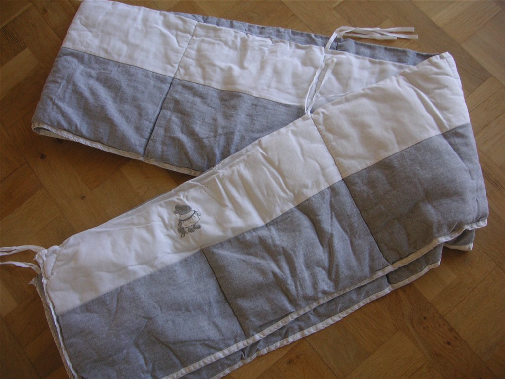Kristine skriver: Det er netop den sengerand jeg selv brugte. Du mener den der er grå og hvid ikke?? Der er ikke noget mønster, men bare grå og hvid. Der er dog en lille grå mus i hjørnet på det hvide. Den er meget sød og meget neutral (derfor jeg rigtigt godt kunne lide den) Jeg prøver at se om jeg kan tage et billede af den igen