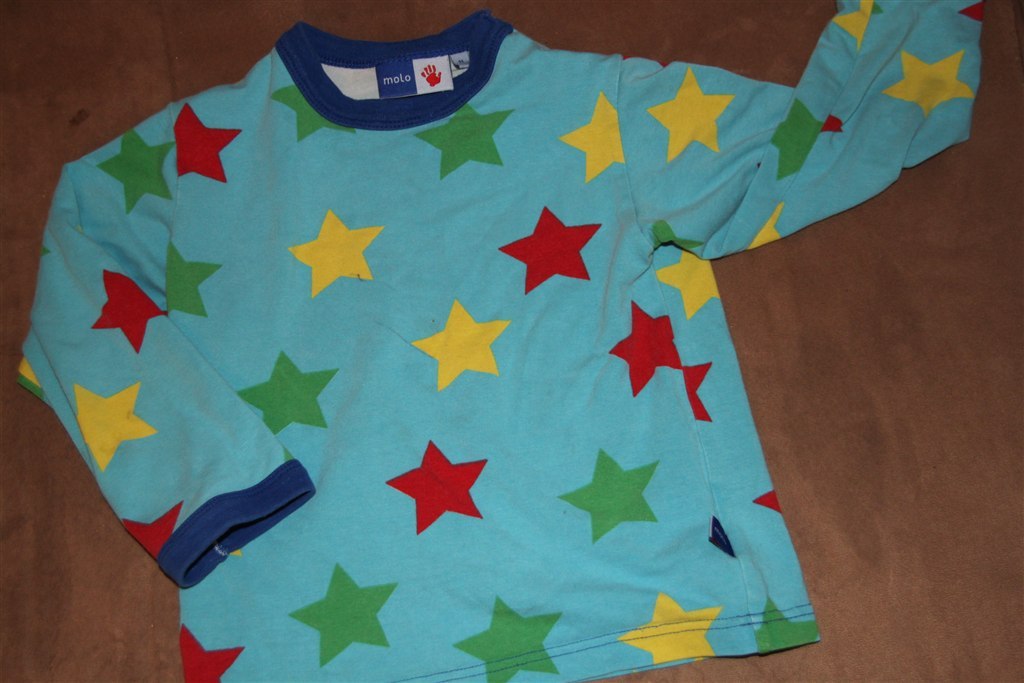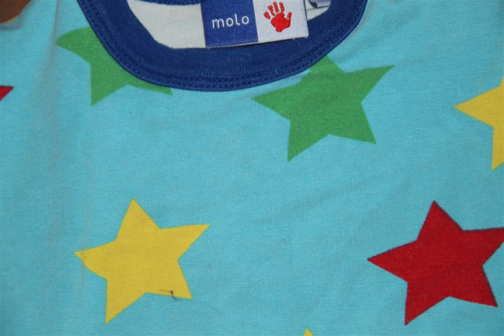 En bluse fra MOLO.. den har det sædvanlige vaskeslid som kommer efter første vask også.. den er brugt 2 gange MAX.. den har lidt fnuller i kanten.. men altså uden betydning og hvis man gider kan man huritgt fjerne det.. den er str 92