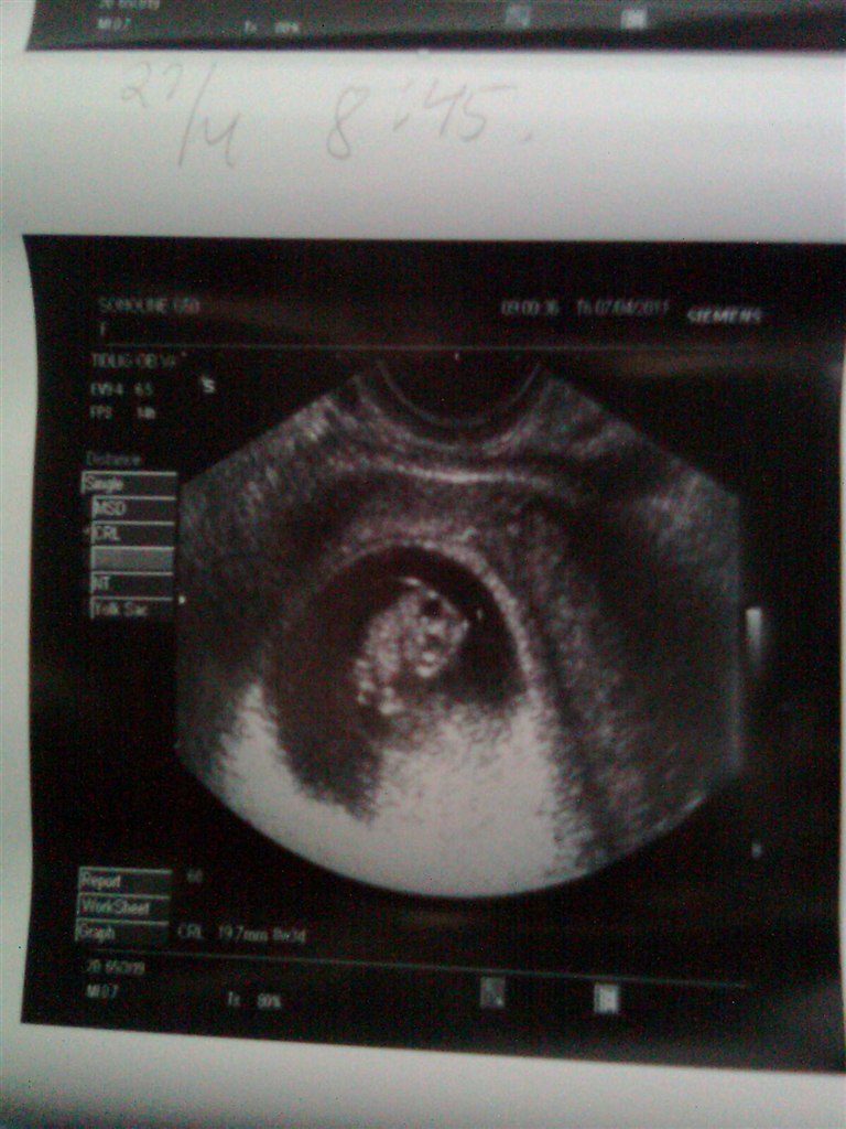 Vores baby har det godt. Hjertet slår derud af FANTASTISK og se den lille igen Bebsen har allerede sin moars sove hjerte, den ville simpelhen ikk være med til og hoppe lidt rundt, næh nej, den lå bare helt stille. Men det vigtigste er bare hjertet slår og den er voksede Har fået hun nu skanning tid d.27.4, da min gynækolog godt kunne tænke sig og se den vinke også lige inden NF som er d. 4.5