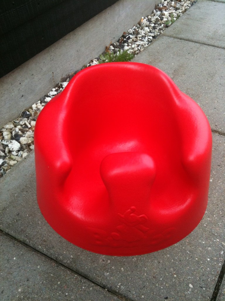 Bumbo stol i rød - pæn og velhold så god som ny Pris: 150,-