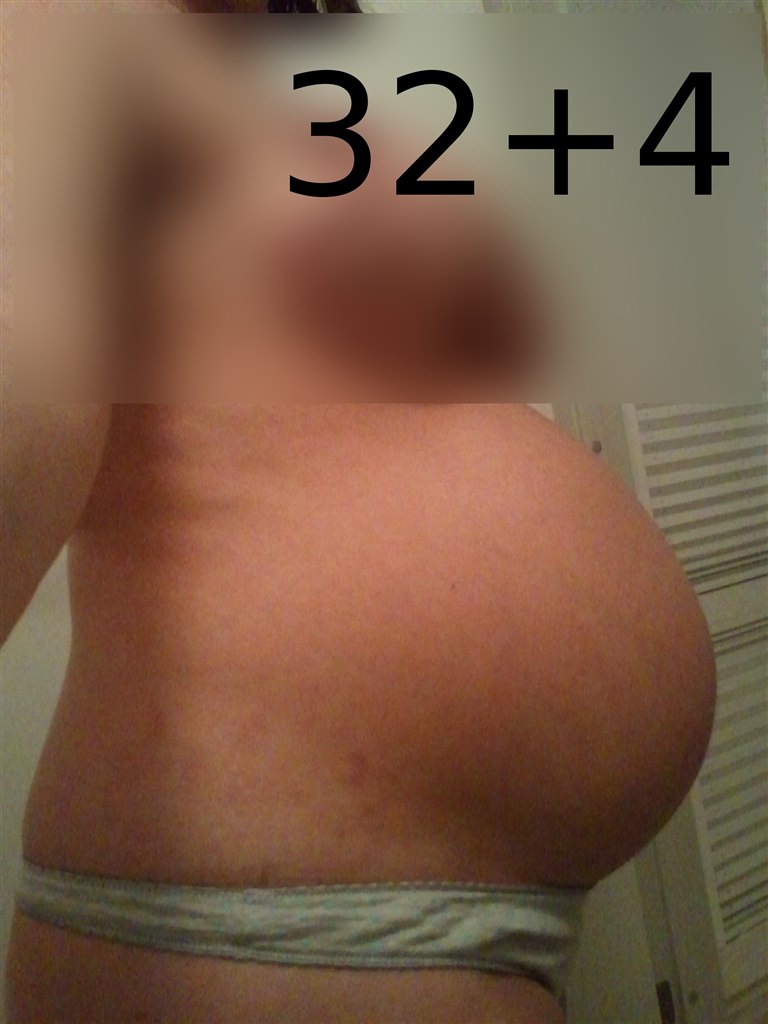 burde være samme vinkel... en del af dem jeg kender synes maven er faldet lidt ned af, men synes ikke selv der er noget der er tydeligt. men kan selv mærke han er ved at være stor og tung, lillefyren