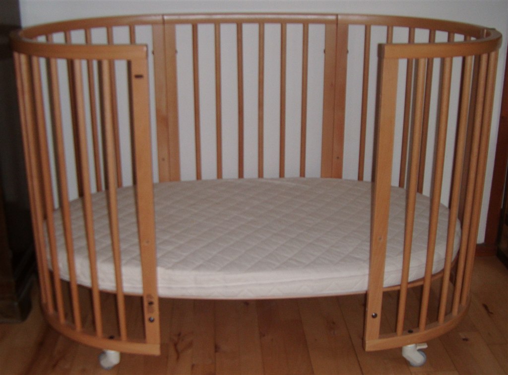 Der medfølger madresser i 3 størrelser (den store har aldrig været brugt), himmelpind, og (hvid) himmel. Samt 2 formsyet lagener til vuggen