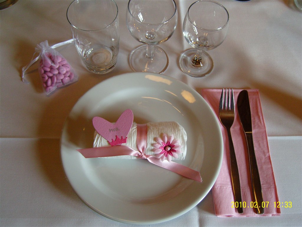 Men nu havde vi måske også generelt valgt, nogle lidt dyre løsninger til Lærkes barnedåb, havde f.eks. fået lavet specielle M&M´s i lyserøde i USA med hendes billede og navn på, som alle gæster fik i en lille organza-pose og et stort prinsesseslot som kage blev det også til
