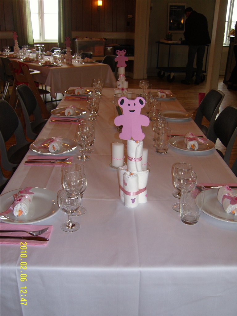 Vi var 40 pers. og så blev der selvfølgelig brugt en del bleer til bordpynten også, men det var ikke galt.