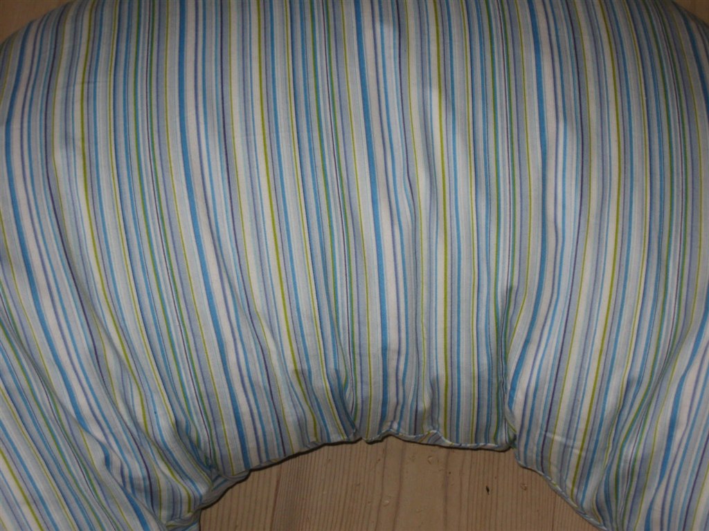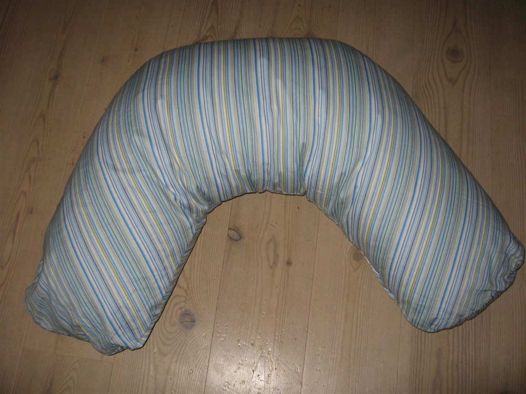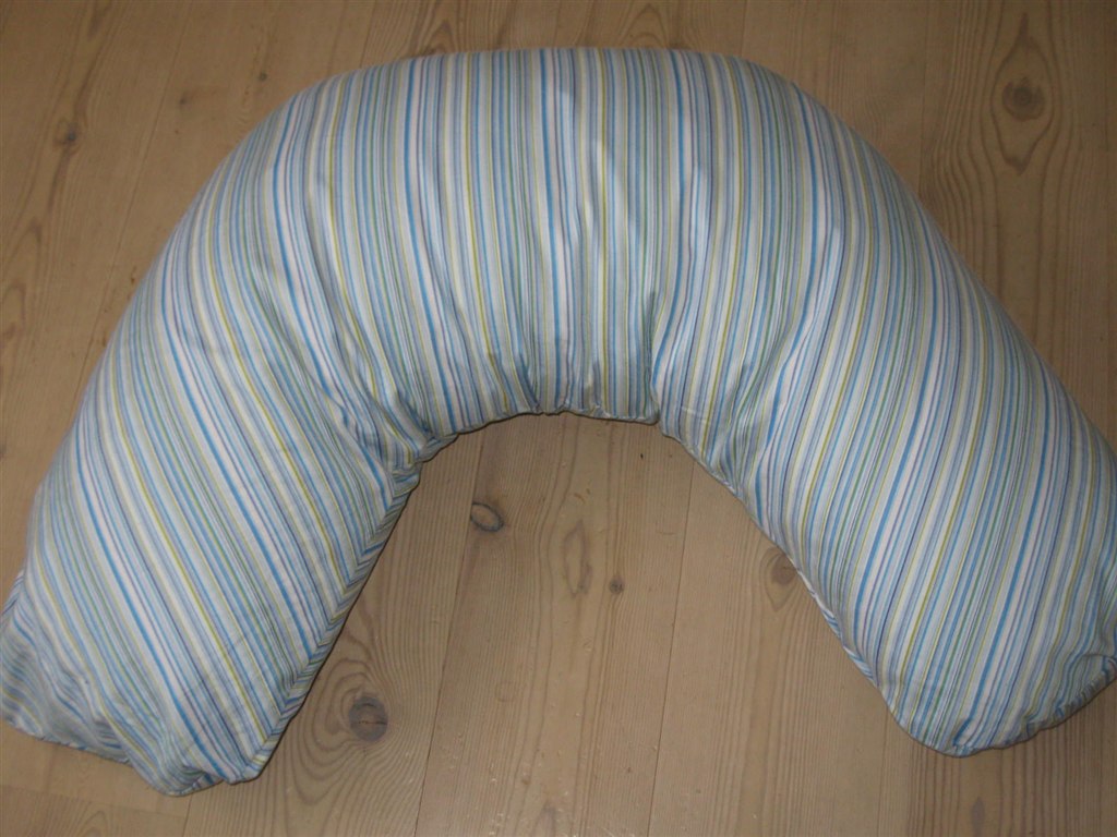 Blå/grøn og hvidstribet ammepude fra Vanilla sælges. Betrækket er rigtig blødt og lækkert og puden har bomuldsfyld.