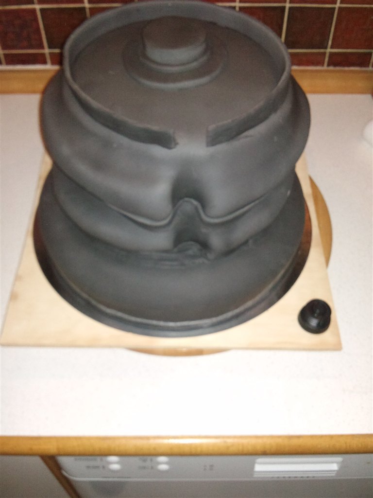 Jeg fik en udfordring, der lød på at lave en kage med nok til i hvert fald 50 personer, den skulle være en forstørrelse af en prop, jeg fik udleveret. Det var en sjov udfordring, men også lidt drilsk. Kunne f.eks. kun få to gevind på, selvom der var tre på proppen. Den vejede 9 kg, så en ordentlig moppedreng