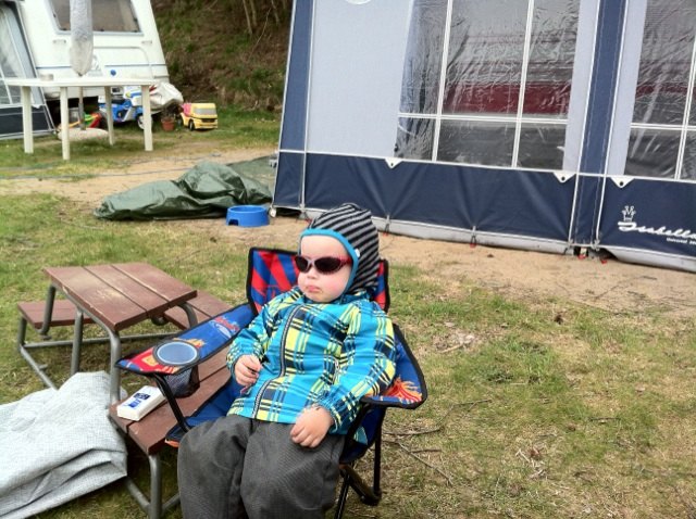 Vi var lige et smut på camping og besøge mine forældre i dag. Kristopher valgte så at sætte dig i en stol udenfor og tage en slapper