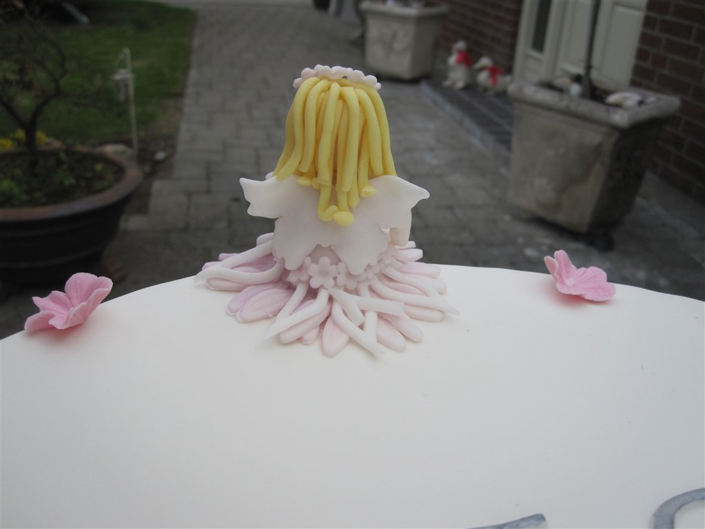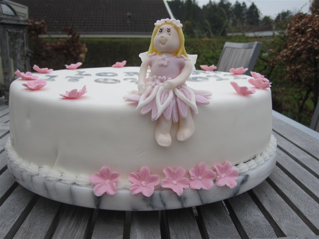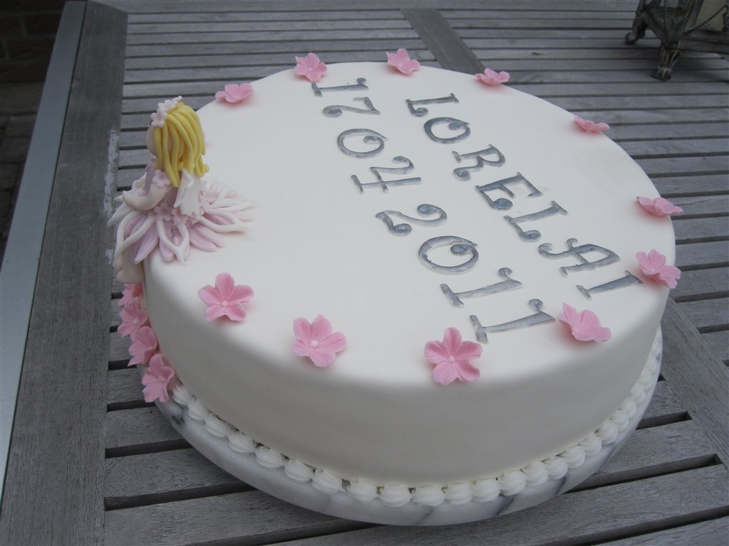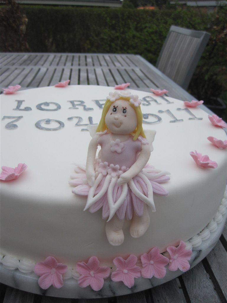 Så er Lorelai's dåbskage endelig færdig og afhentet. Og dermed er weekendens sidste kage overstået.. Phew.. Jeg syntes det var virkelig hårdt at skulle lave bare to kager på en weekenden, så hatten af for folk som Michelle (Polkaprik), der laver der 4-5 kager per weekenden.. Jeg ville dø!!