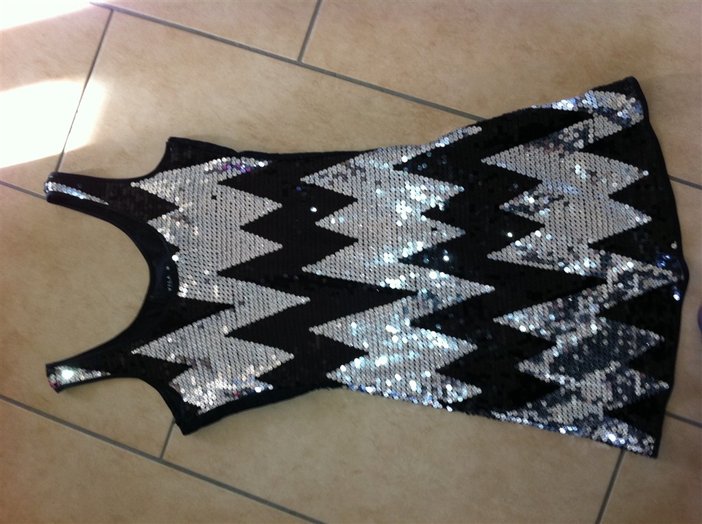 har en perliet kjole merer den er dog lidt strammer den er str M og kan ikke give sig så meget