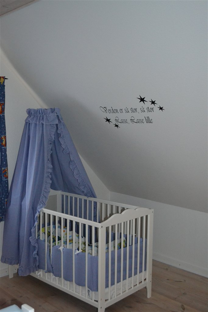 Det ene billede med tremmesengen er der ikke wall sticker på, det er fordi det er taget før, men billedet efter er der