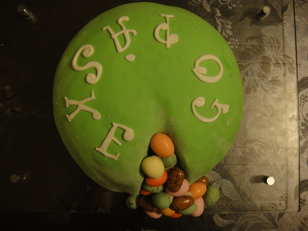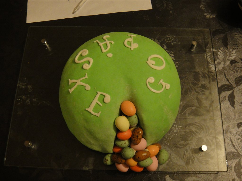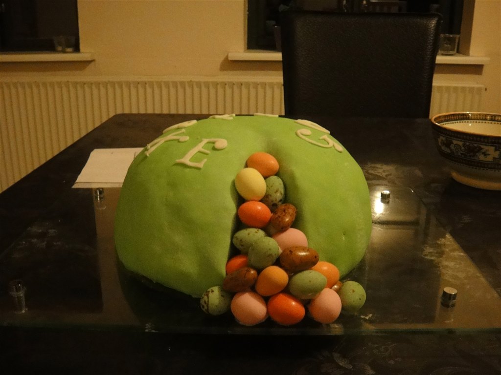 ENDELIG færdig med min påskekage til vi får gæster! Nu har jeg lavet kage siden kl 23.00 (jeg skulle jo lige se paradise og kagen var jo lagt sammen, så det ku da ikke tage så lang tid)!