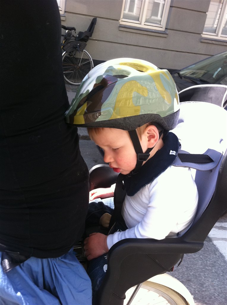 Hvor er det godt i cykelstolen hehe, det er hårdt at være barn