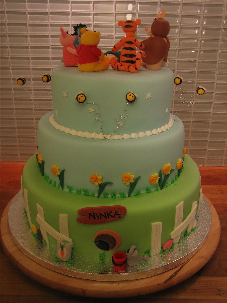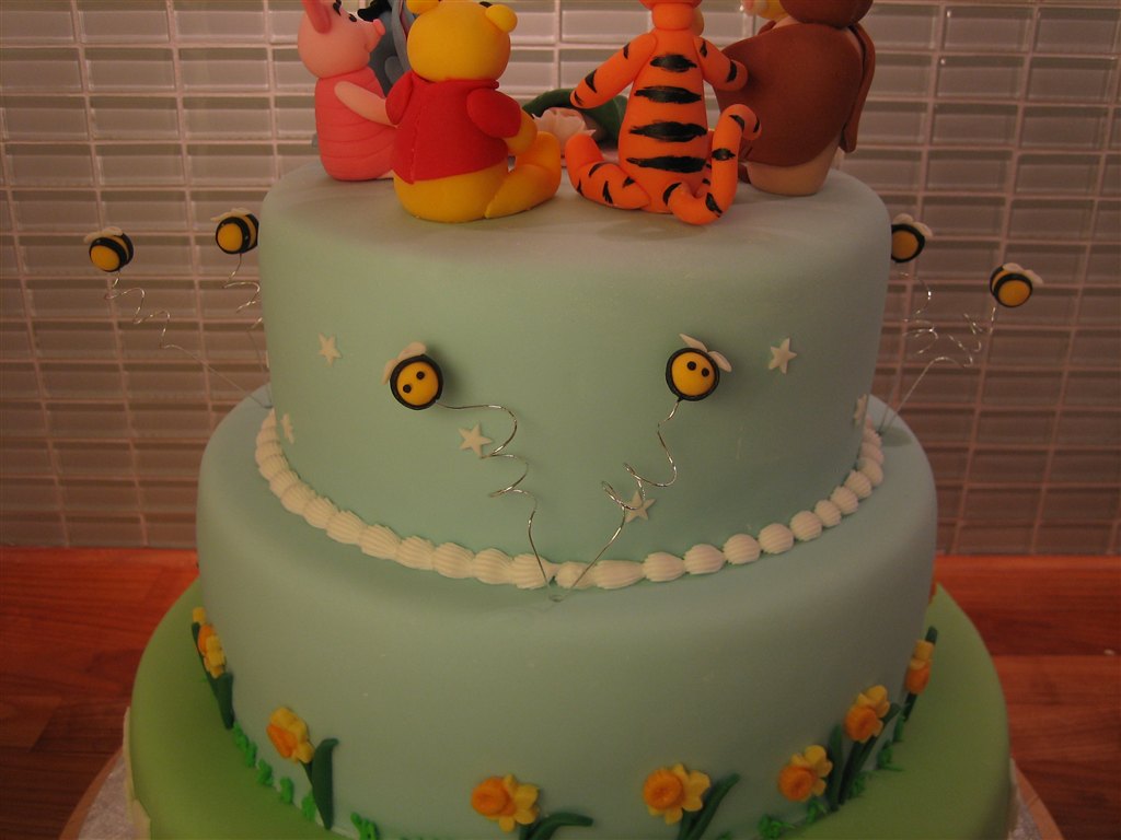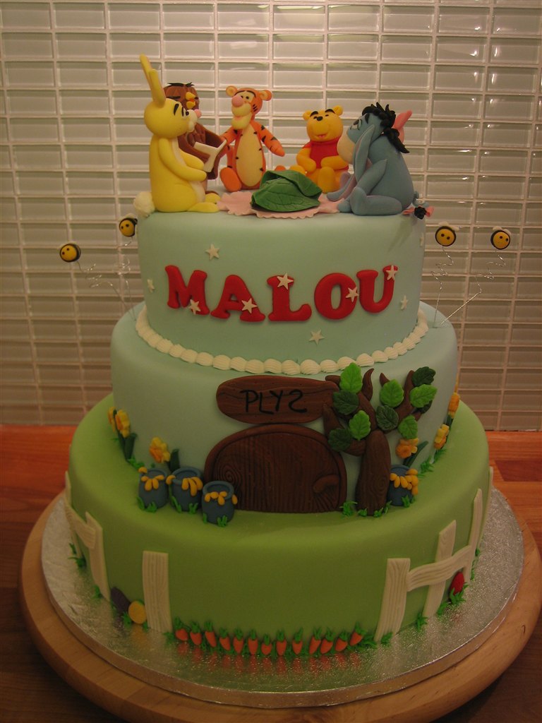 Her bliver du smidt ud i den vildeste billedspam af min sidste Peter Plys kage, lavet til Lena´s lille prinsesse Malou der blev døbt idag