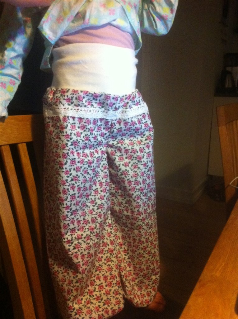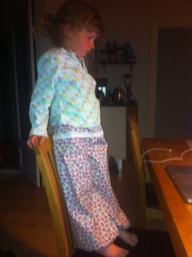 Vi skal til konfirmation 8. maj så jeg har igår syet et par fine bukser Liva skal have på den dag.