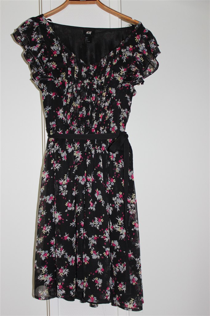 Sød blomstrede sommerkjole fra H&M, str.36. Har selv brugt den en enkelt gang, mens jeg var gravid, selvom det ikke hedder en ventekjole. Den er skåret under brystet, så der er masser af plads til maven! 75 kr dertil porto på 15 kr.