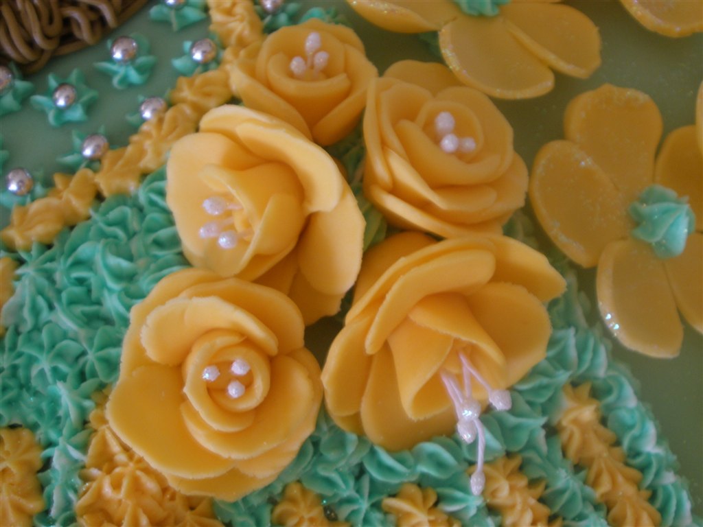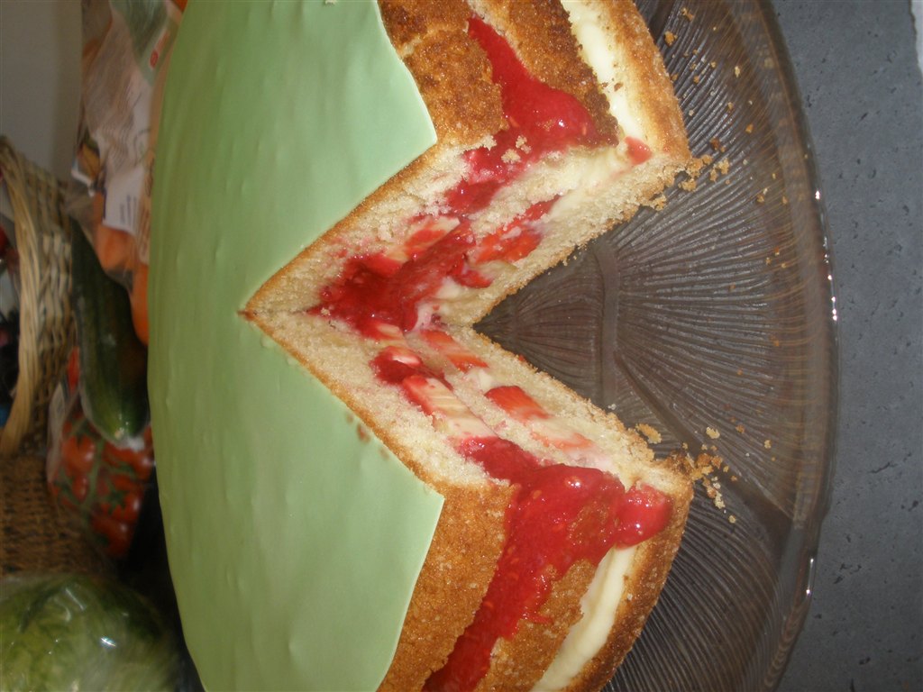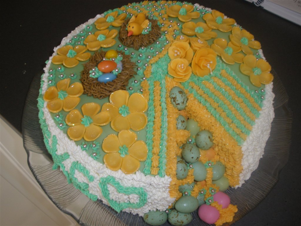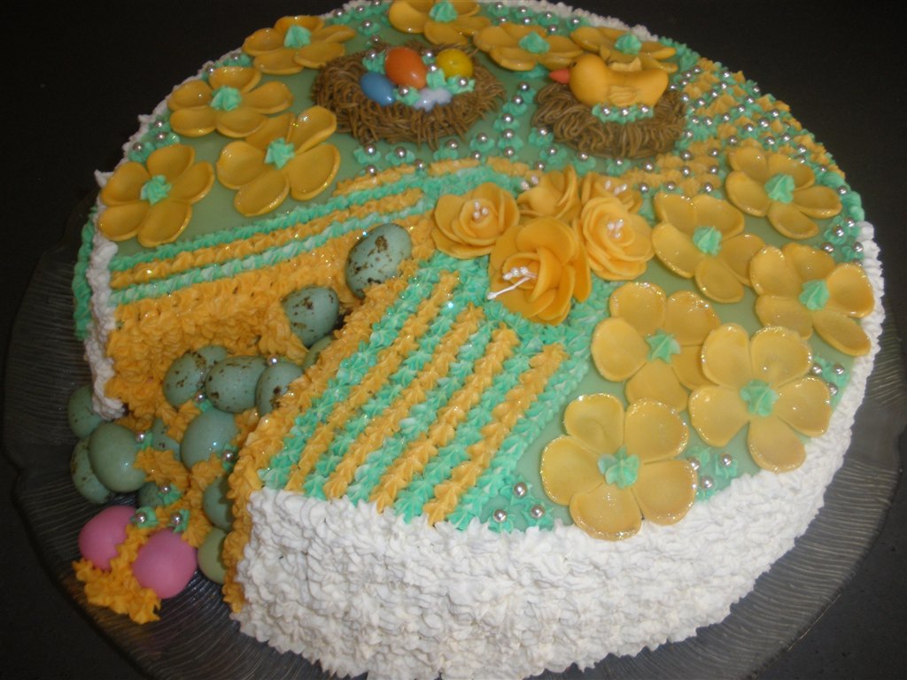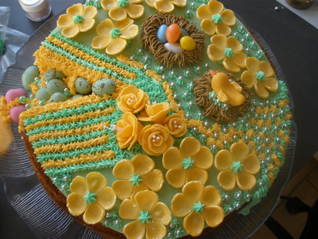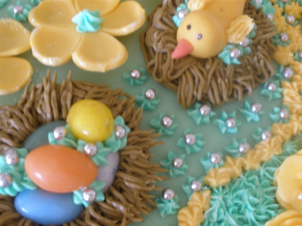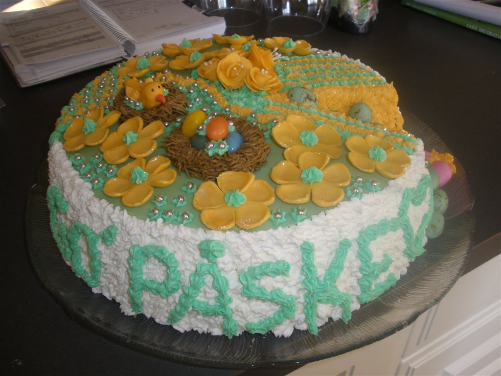 så der jo pynt i for a fondant- smørcrem og lige på denne her er der jo små marsipan æg..