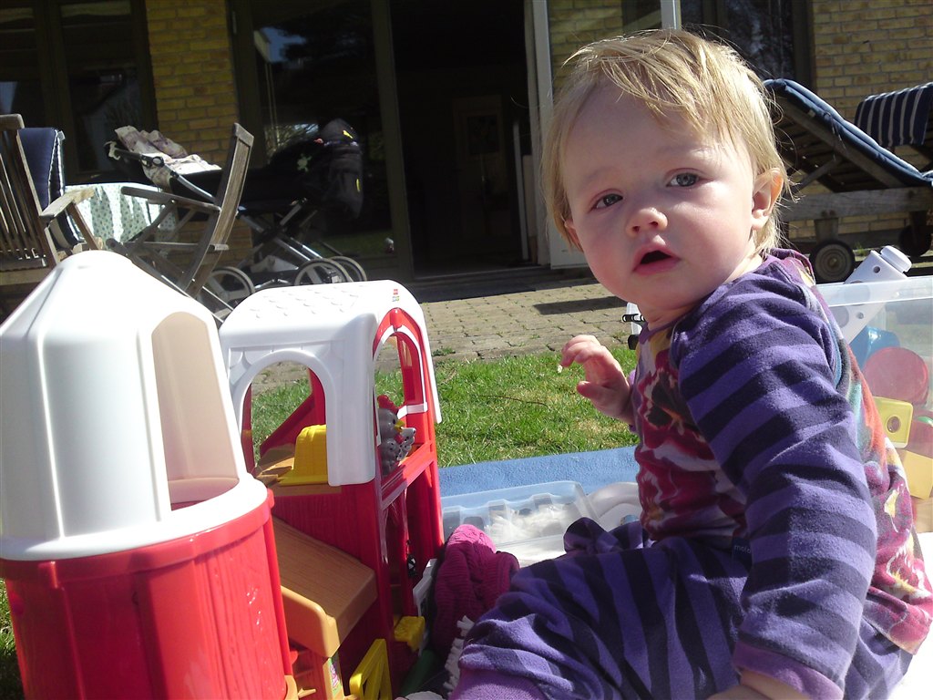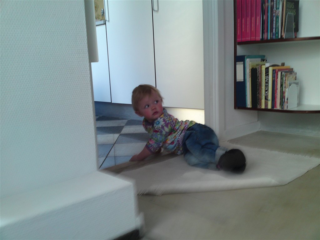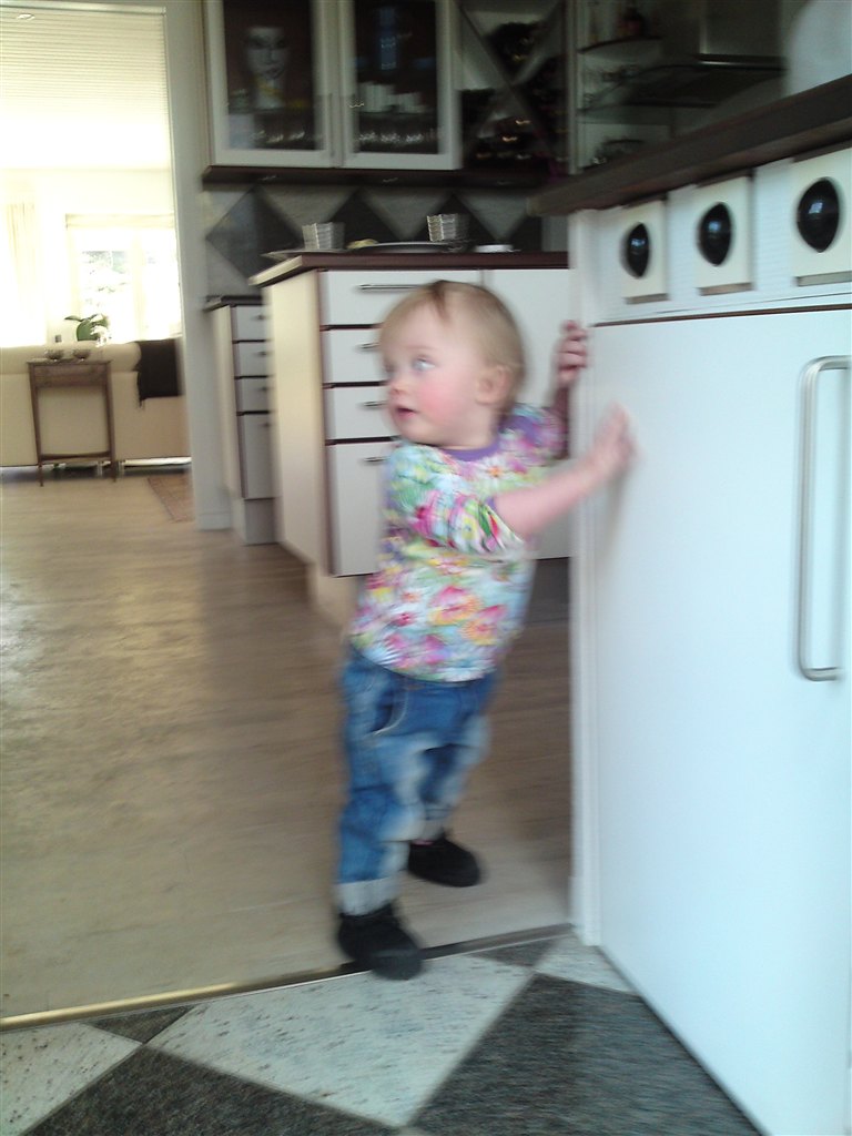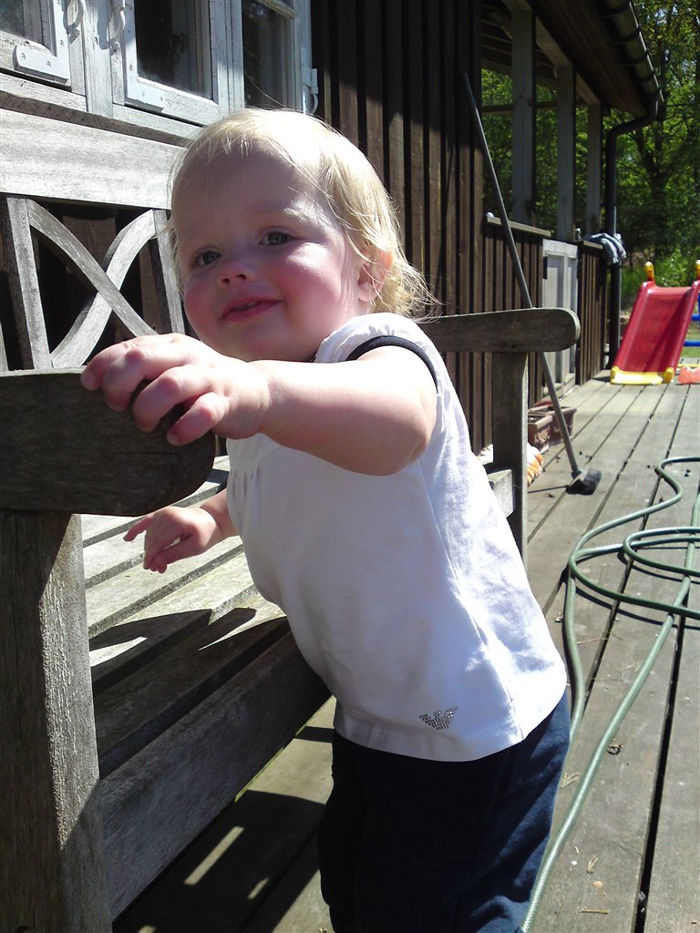 I har fået at vide hun er begyndt at gå - det gør hun stadig (undtagen når mor finder kameraet frem.. iiihhh!!!!)