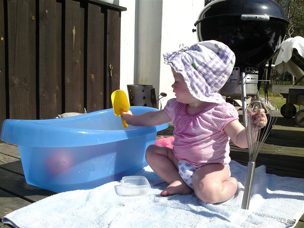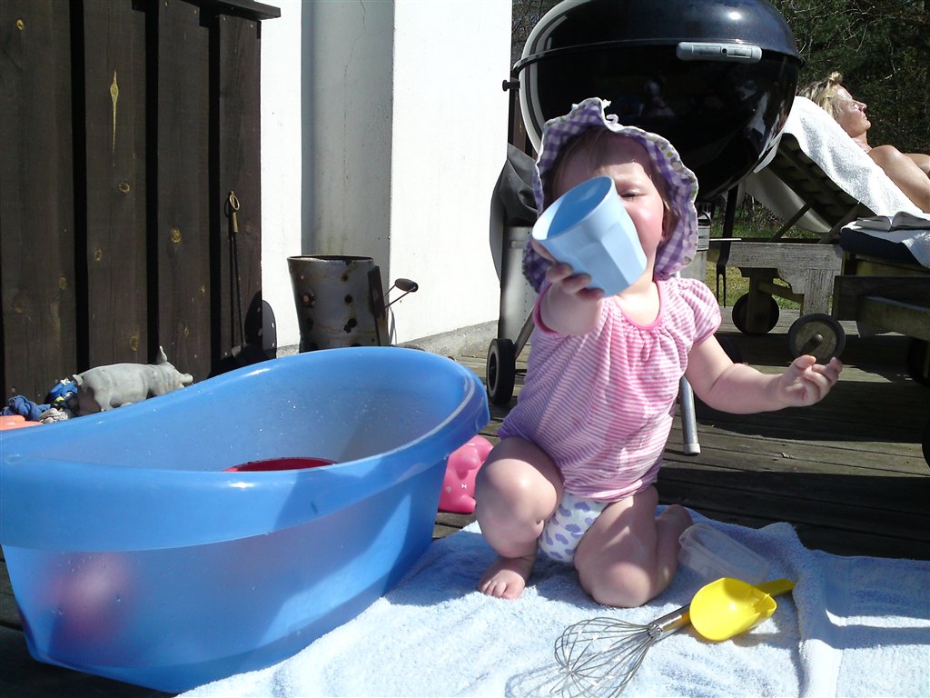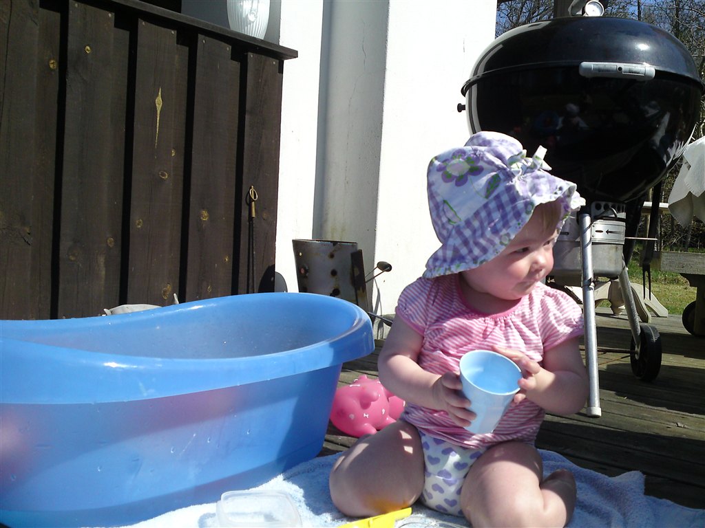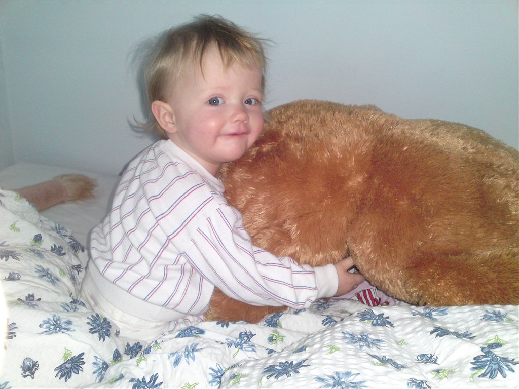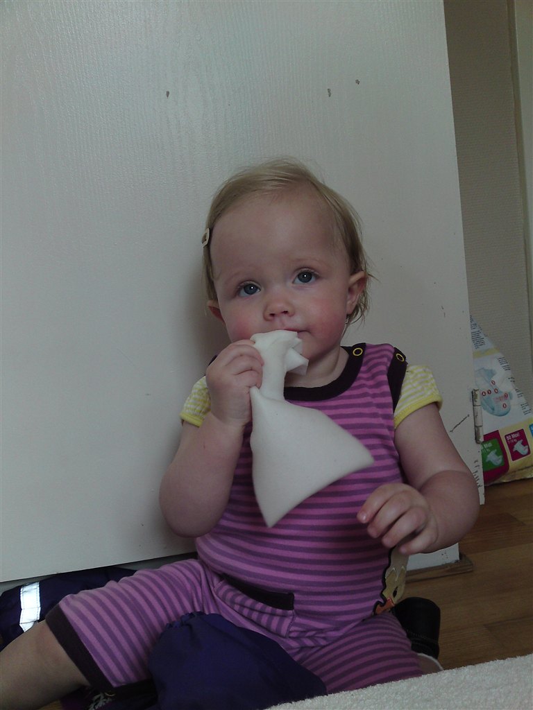 I har fået at vide hun er begyndt at gå - det gør hun stadig (undtagen når mor finder kameraet frem.. iiihhh!!!!)