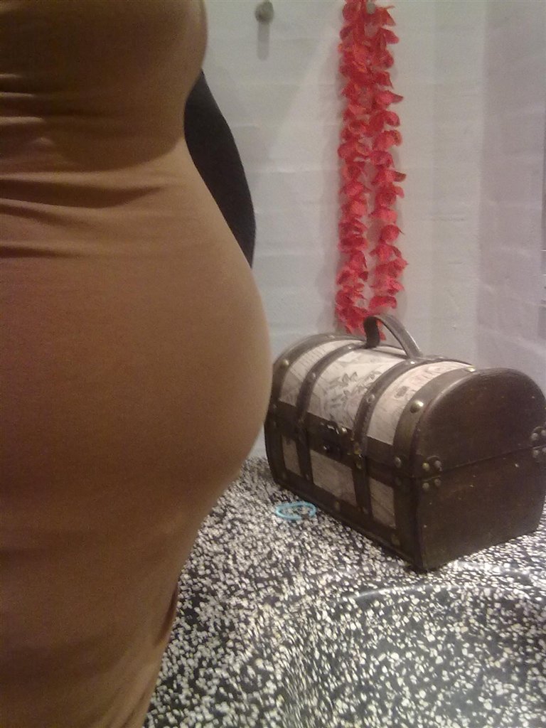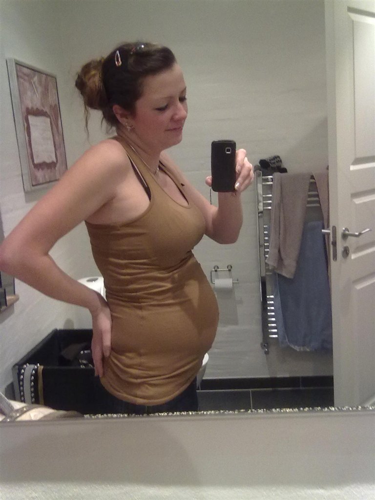 Den er slet ikke kæmpe stor overhovedet, men man kan godt se jeg er gravid nu.