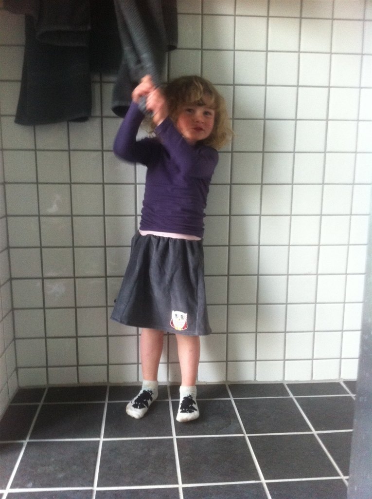 TbCp skriver: En lille nederdel i en rest grå fløjl og med strygemærke på + en tunika med lommer...