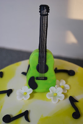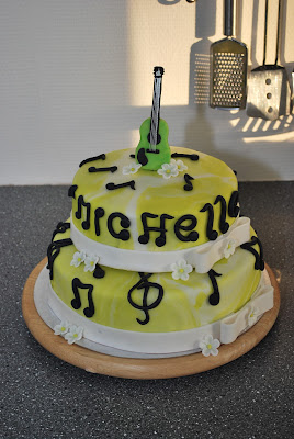 Den 1. er til en musikglad pige, og hun bestemte selv at farverne skulle være limegrøn, sort og hvid og så skulle der være noder og en guitar. Her er mit bud: