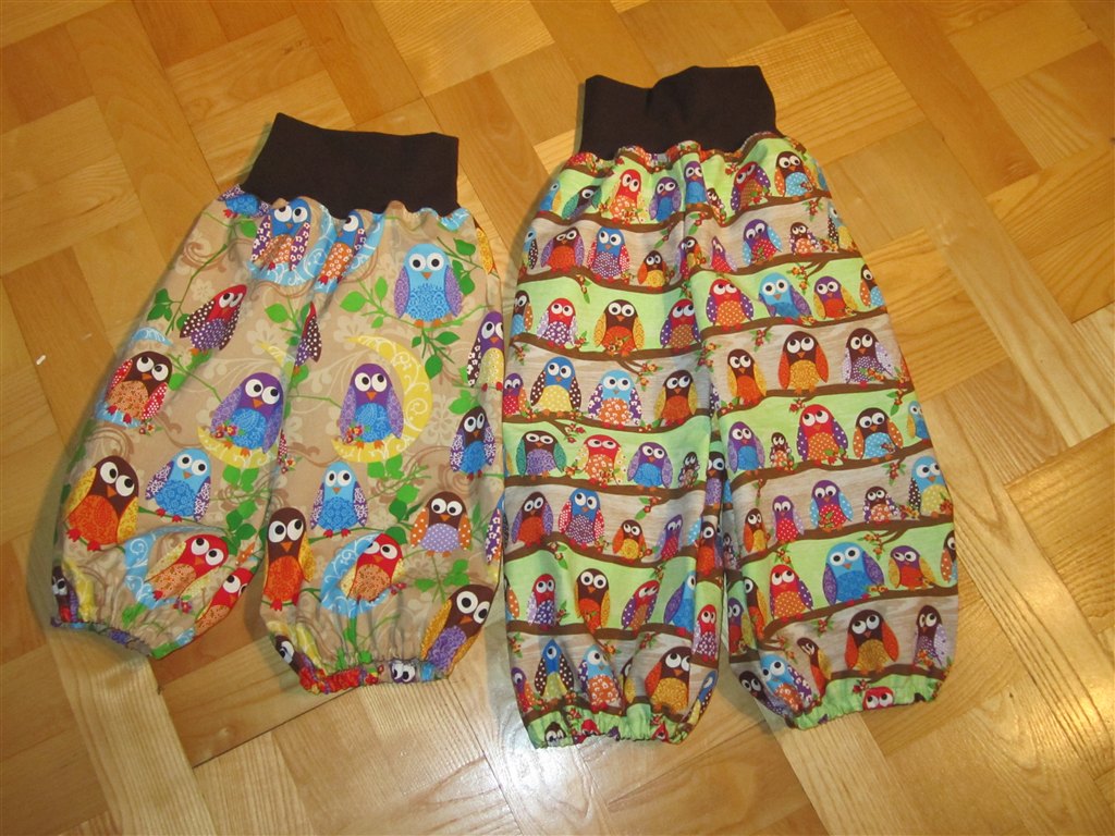 Skouboe skriver: Mine unger vokser som ukrudt i øjeblikket og de er hastigt ved at rende tør for bukser, så jeg syr på livet løs til dem..Her er de seneste. Jeg har syet begge par i begge størrelser.