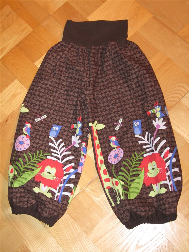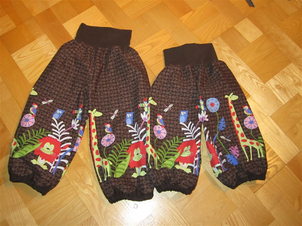 Stoffet er min sidste rest Jungle Jam og netop gemt til Silja blev stor nok til at få et par bukser hun ikke ville vokse ud af i løbet af 14 dage.
