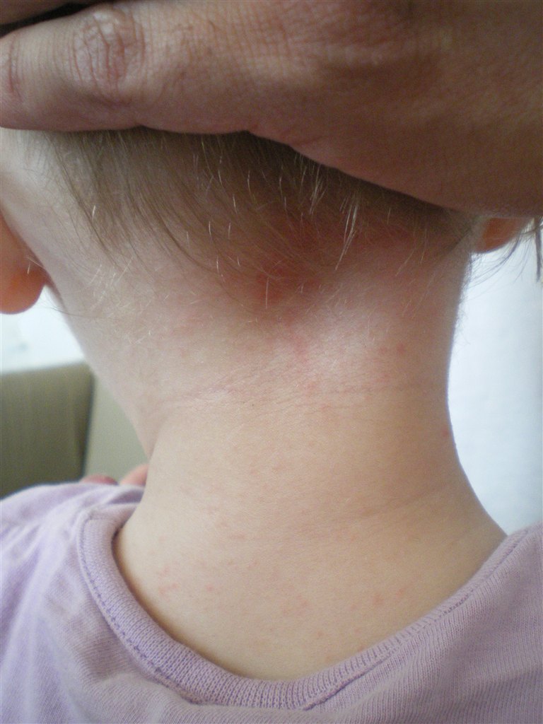 Kæresten lå mærke til i morges at hun gik og kløede sig i nakken.... ellers har vi ikke set hende gå og klø i det...