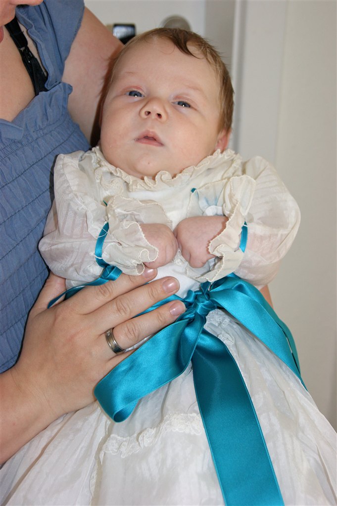Men ja, den er rigtig flot - vi gav hende pink sløjfer på om håndleddene, det var så sødt