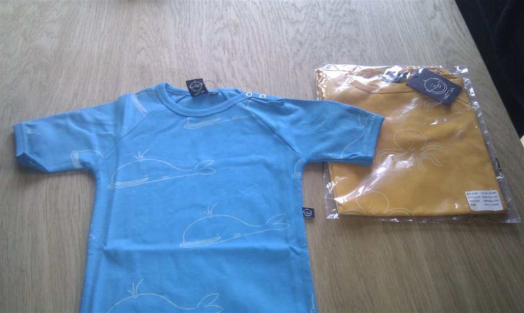 Der er en turkis med hvaler og orange med blæksprutter. De er helt NYE. Ikke engang vasket.