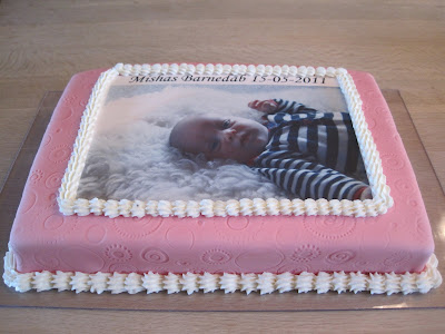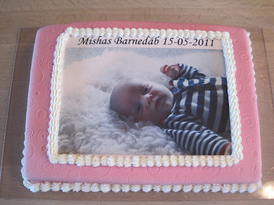 Her et par kager til lille Misha som skal døbes i morgen. Så fik jeg prøvet at ligge sukkerprint på for første gang. Det var slet ikke så svært som jeg havde frygtet:-)