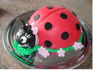 Eller du kan finde en skål der passer i størrelsen og formen, og bage en lille kage der i, så det passer til mariehønens hovede.