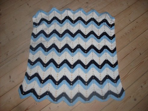 Hjemmestrikket babytæppe. Aldrig brugt.