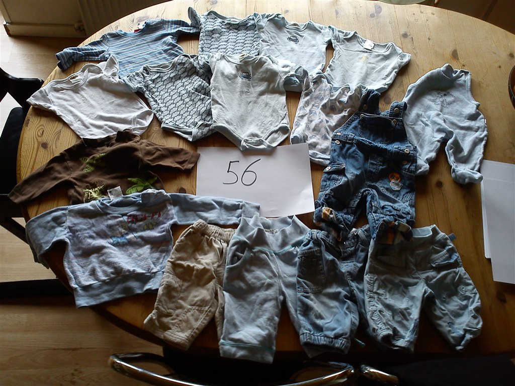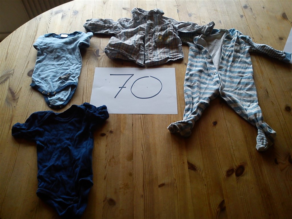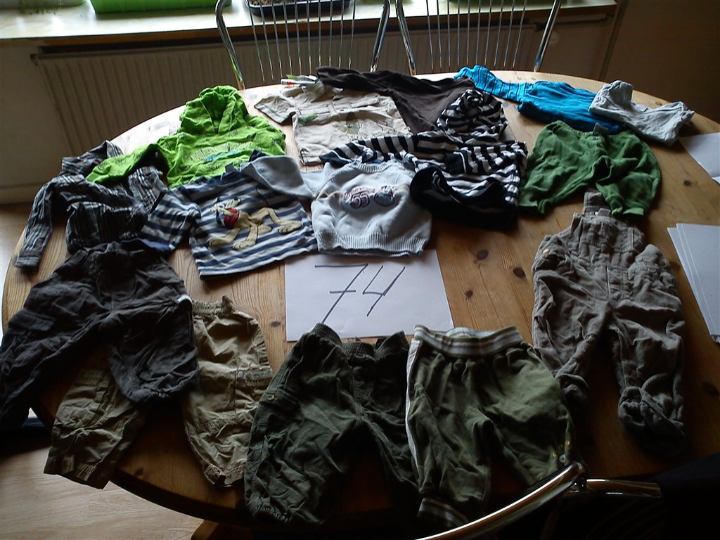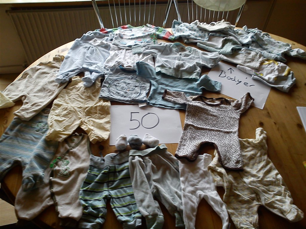Så ligner det at du på det sidste billede med str. 74, ovre i venstre side har to par stribede spencerbukser liggende. Hvordan ser de ud sådan tæt på? Mærke?