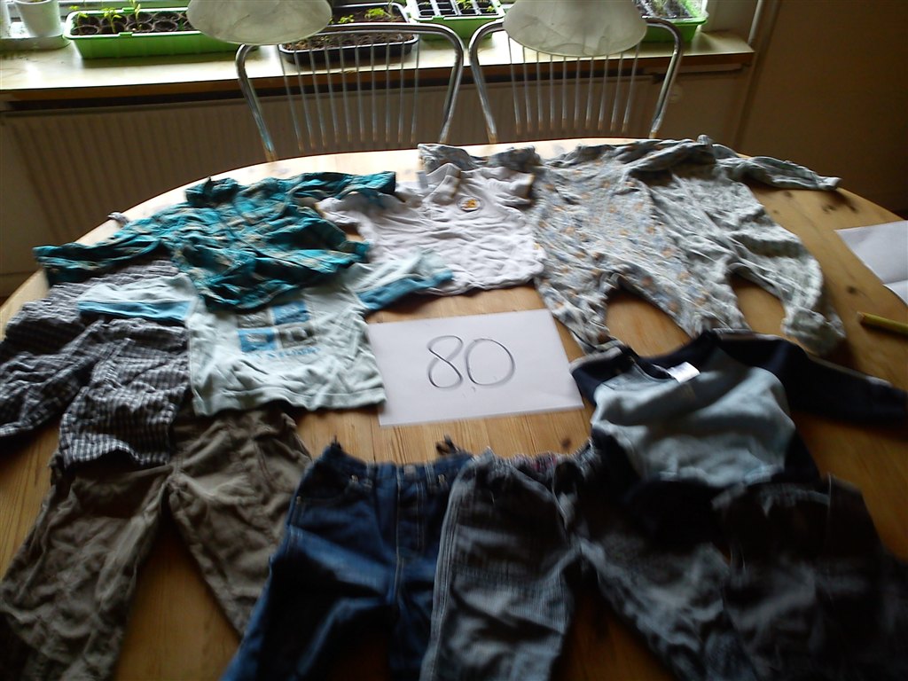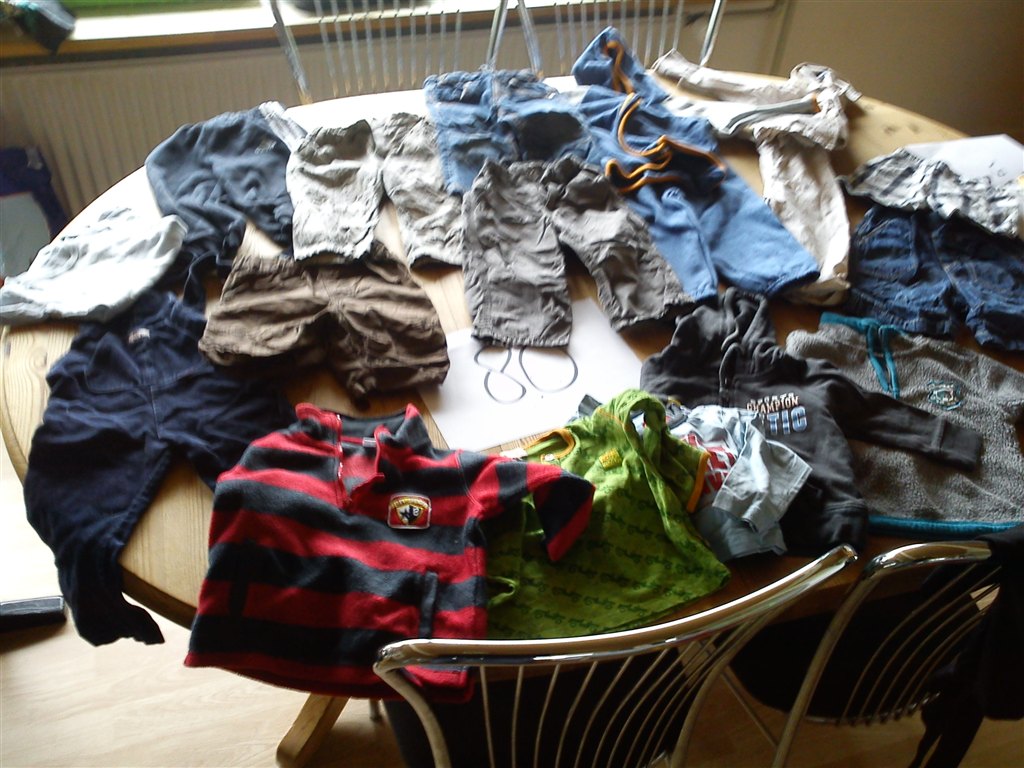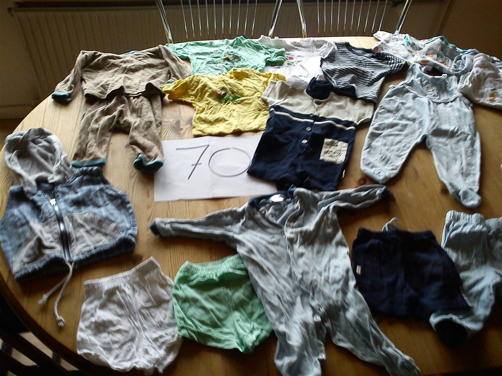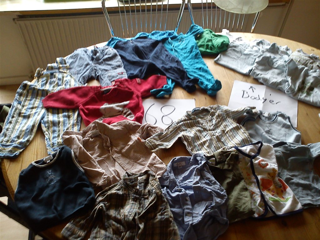 Så ligner det at du på det sidste billede med str. 74, ovre i venstre side har to par stribede spencerbukser liggende. Hvordan ser de ud sådan tæt på? Mærke?