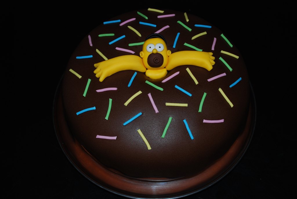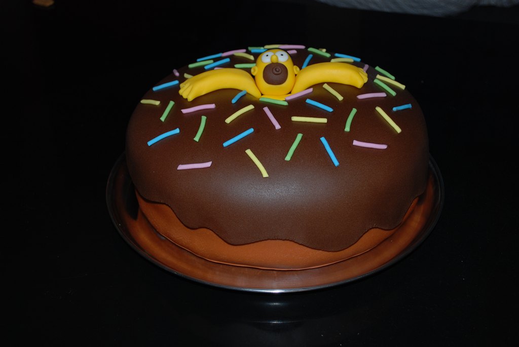 Min kæreste fyldte 30 år og ville derfor gerne have kage med på arbejde. Han er helt vild med Simpson, så det blev der denne kage ud af