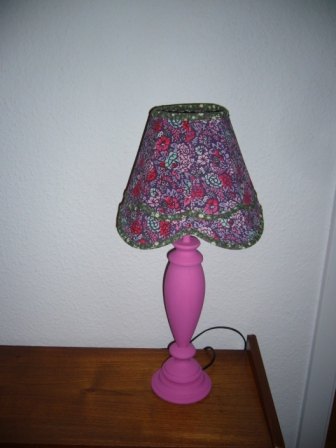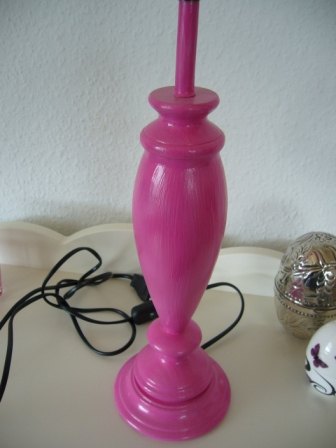 Fin gammel lampe, slebet ned, malet pink og givet lak. Sælges uden skærm. Pris: 150 kr pp