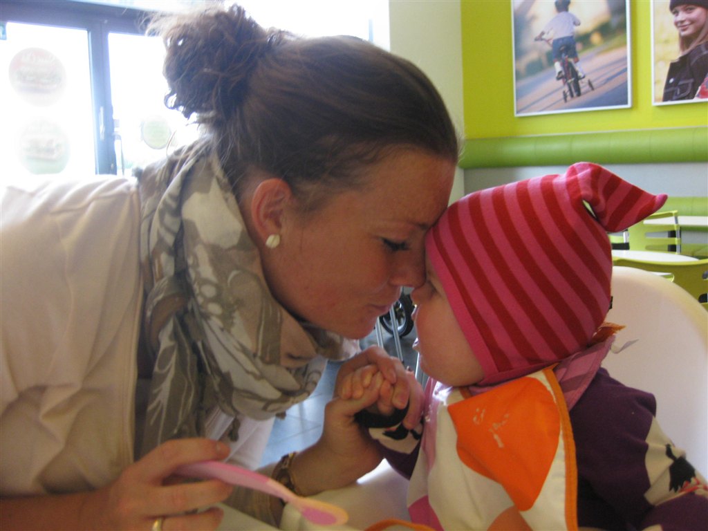 Hun stortrives!!! Er stort set alt ædende.... rugbrød, frugt, grønt, kød, ostehaps, youghurt osv osv osv....!!!! ALT ryger ned.. hihi!!!