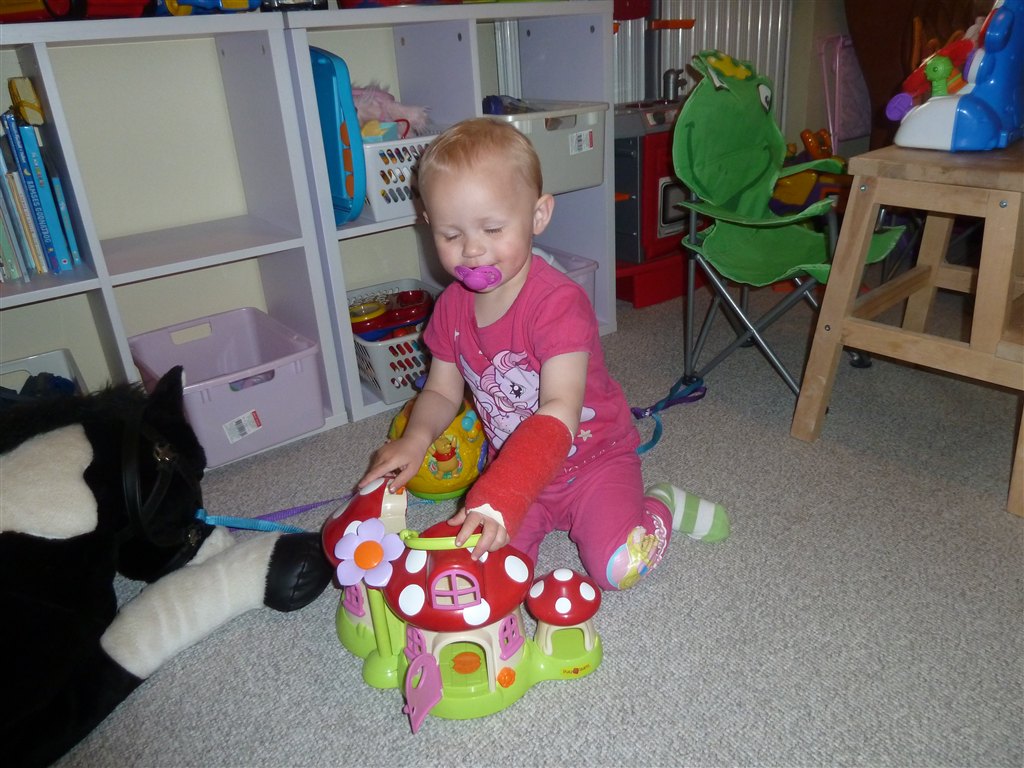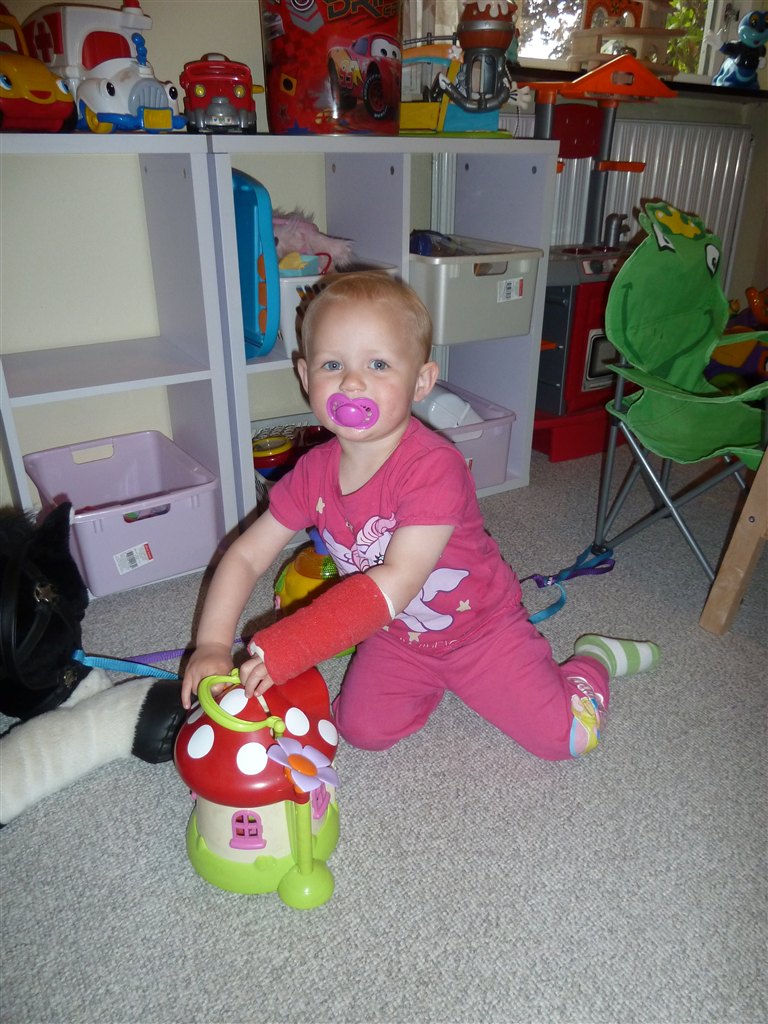 Så sent som her til aften, så skulle hun ligne demostrer, at hun godt kan klatre med en arm bare.