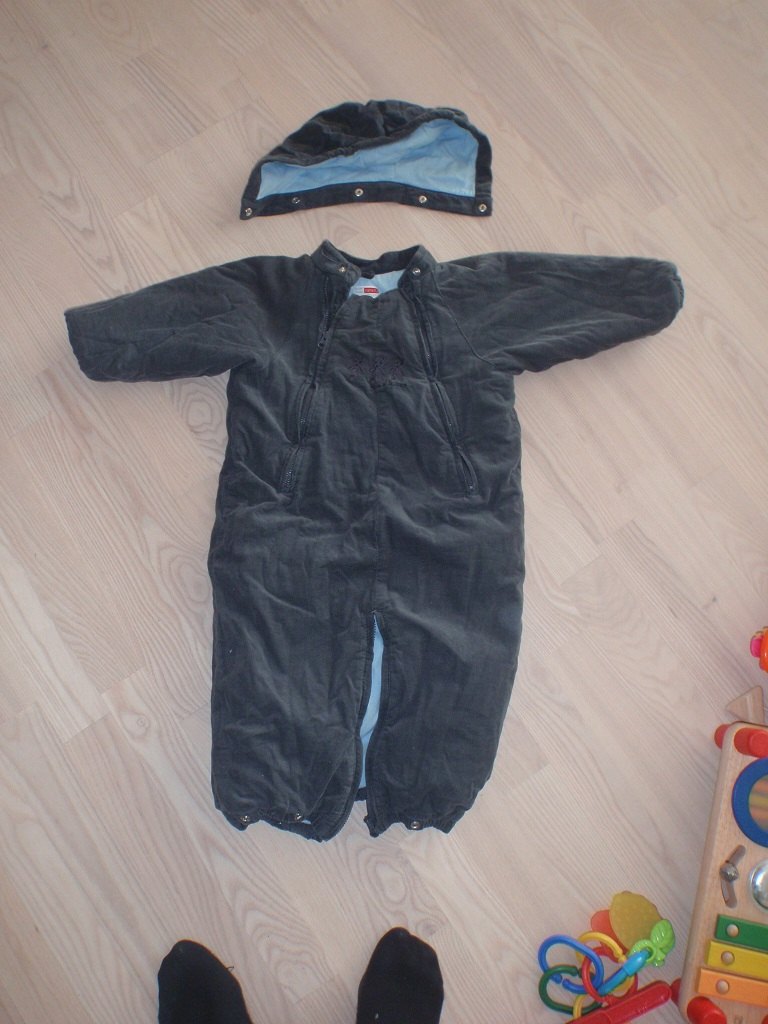 Hue kan knappes af, den kan lynes sammen for neden så det både er dragt med og uden ben(ligesom en sovepose) Skide smart, og dejlig lækker blød invendig. Fejler absolut intet.