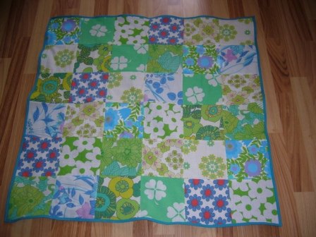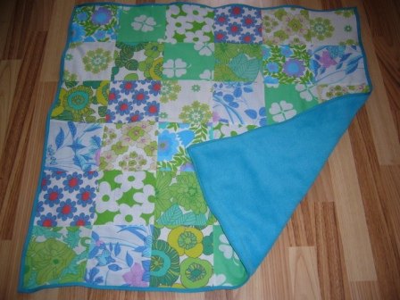 er lidt stolt - jeg har fået lavet et fint patchwork-tæppe, i grønne/blå farver, med blå fleece bagpå så det er dejligt blødt, hvis det skulle blive en lille baby-dreng vi får... Har allerede lavet et i tøsefarver, så er jeg dækket ind