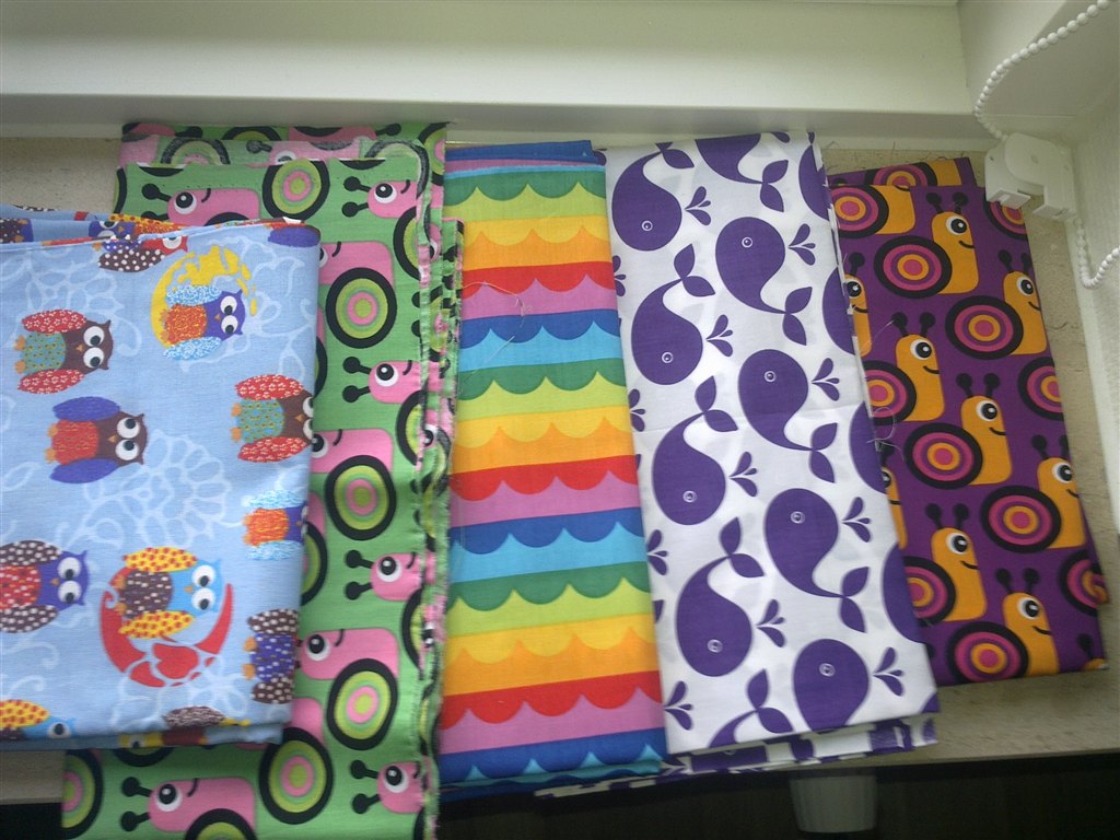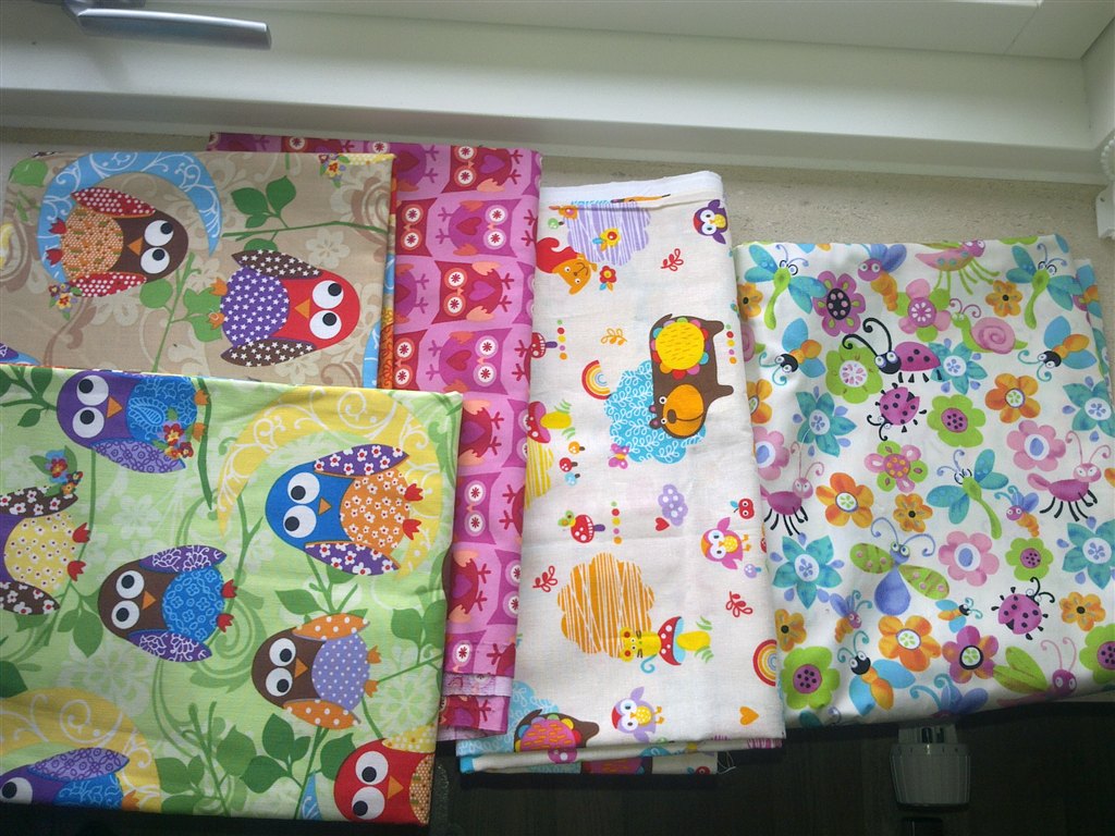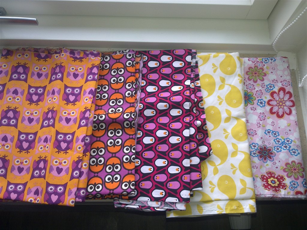 På nær uglestoffet på det sidste billede, kan jeg sy bukser af alt det her slags stof til 90-100 kr., inkl. porto i str. 74