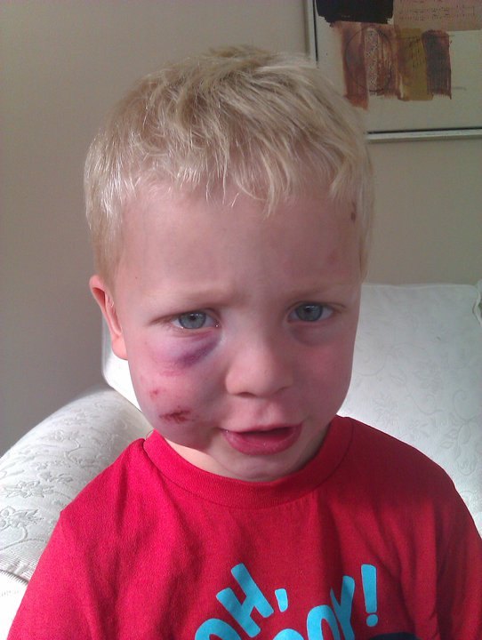 MoarHvidovre skriver: Sådan ser Luka så ud i dag. Bulen er blevet lidt mindre, men til gengæld har han fået en blå kind og øje. Han er stadigvæk super sej og klager slet ikke.