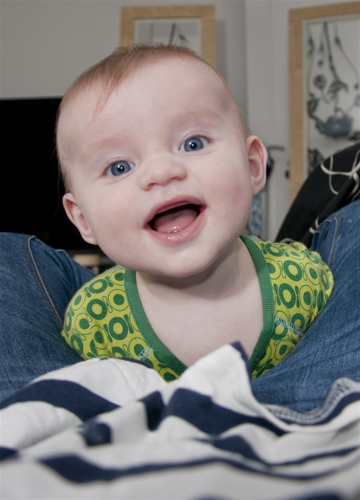 han er simpelthen en charmetrold, han er begyndt at grine så meget, han har opdaget at han kan skrige og vi tumler bare rigtig meget.. han er blevet på opmærksom på os og omkring sig, hunden har han også opdaget og er virkelig ivrig efter at spise lidt i ham...