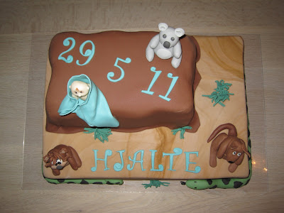 En sjov dåbskage til lille Hjalte. Ønsket lød på noget med en tasmansk djævel, Ayers Rock og en drengebaby.