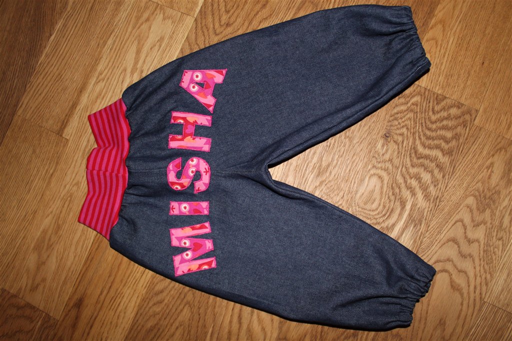 Hvad stof er du interesseret i, skal det være med navn eller alm bukser bomuld eller jersey..??